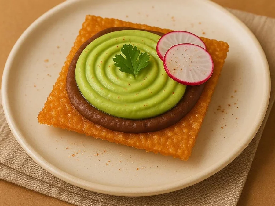 3. Monta las tostadas: Unta una capa uniforme de frijoles calientes sobre el